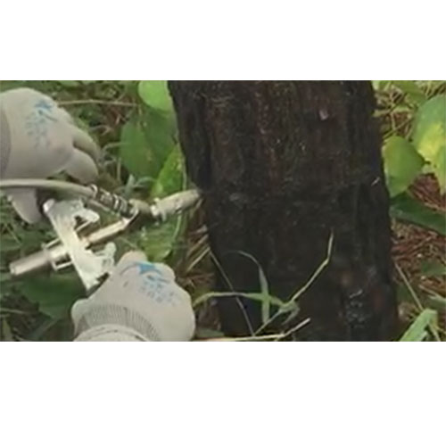 3、 使用注射器將3-5ml藥劑通過針頭注射到活性邊材,注射速度根據樹的吸收調整;