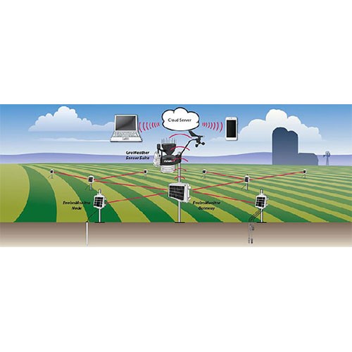 每個節點可直接連接多種傳感器(0-4個),直接收集測量數據,然后將數據發送給網關。1個網關可以掛載至少20個節點(也可以直接連DAVIS接傳感器組件ISS),通過蜂窩網絡,網關將數據推送到云端服務器上,用戶可使用電腦、平板或者智能手機訪問這些數據。